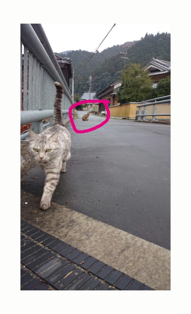 ↑ 私と一緒にお散歩についてくるミヌ。うしろにたたずむスコッチは、テリトリー外だからか、この橋を越えてこちらに来ることができません。そしてずっとあそこでミャウミャウと鳴いて私とミヌを呼び続けます….