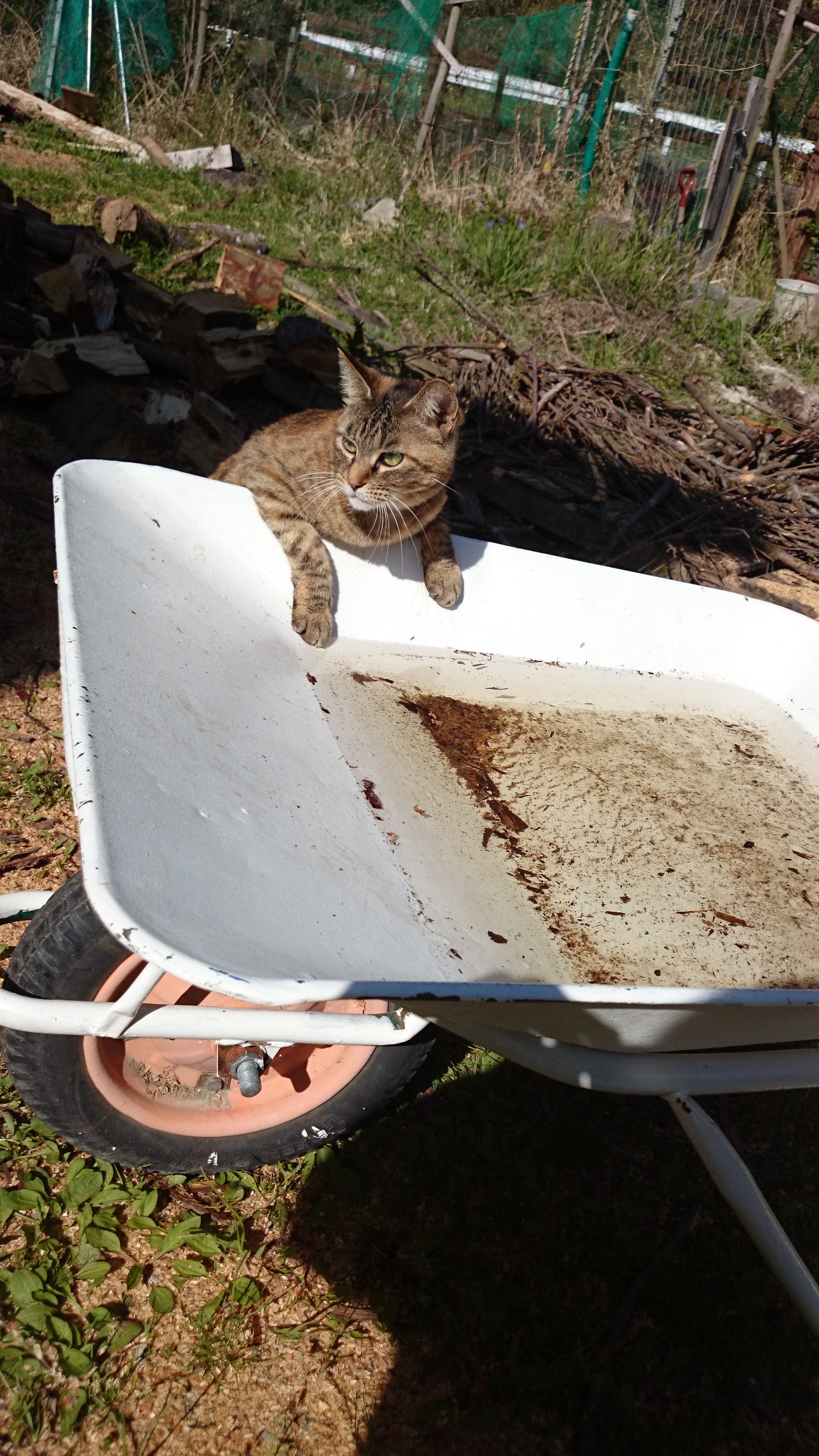 ↑ ちゃんと飲み水をあげてるのに、一輪車にたまった雨水を想定外に飲むスコッチ。何も想定しない猫のようになりたいものです。