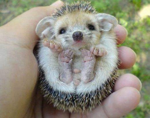 フランスの親戚のおばさんがみつけたハリネズミ(彼女の手です) ↓