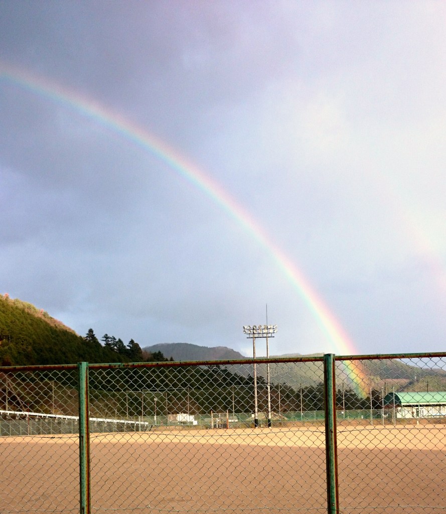 ↑ テニス中にでた虹。とても大きなアーチで、薄くてみえにくいけどダブルレインボーです。