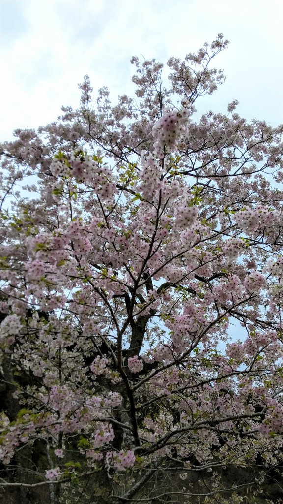 今年は残念ながら村のお花見も中止です。山の葉桜をひっそりと愛(め)でます。