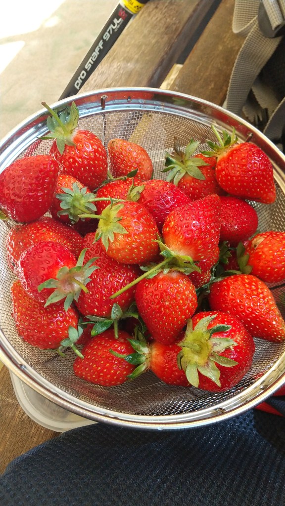 ↓ テニスメイトからの自家製の差し入れ苺、見た目も形もきれいで甘い!
