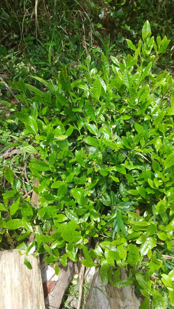 ↓  裏山の小さなお茶の木に新芽だけが伸びてる様子。