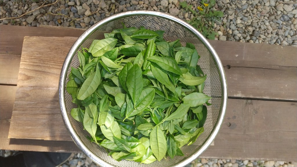 そこら中の山に、昔、皆が自家用に植えたお茶の木がありますが(多分日本全国の山が同じだと思いますが)、今はごくわずかな人しかお茶摘みしないので、文字通りオーガニックのワイルドな新芽が毎年たっくさん余っている(涙)。