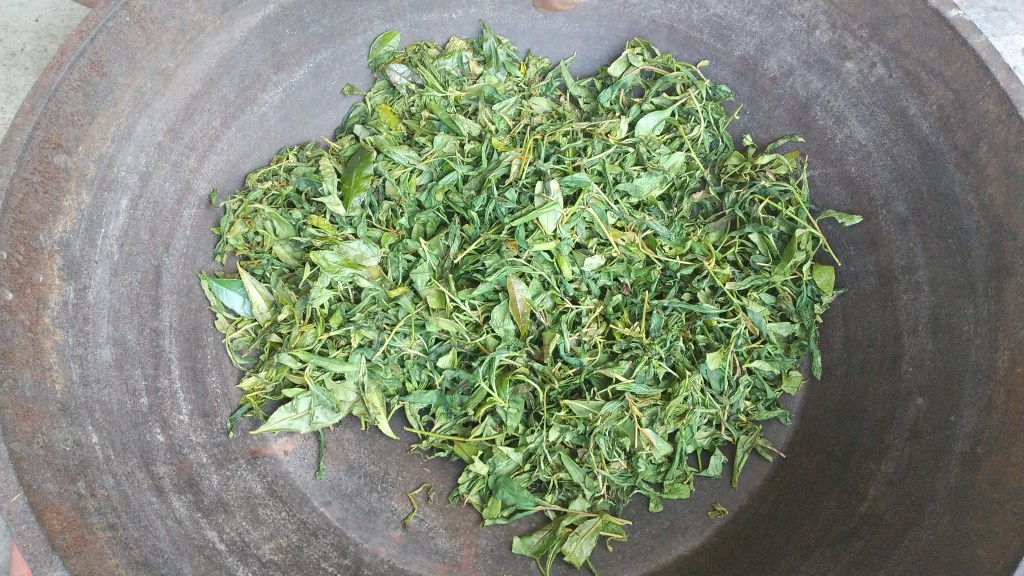 大きな鍋で炒ってるところ ↓  炒っては少し乾かし、さらに炒るを3〜4回くらい繰り返します。