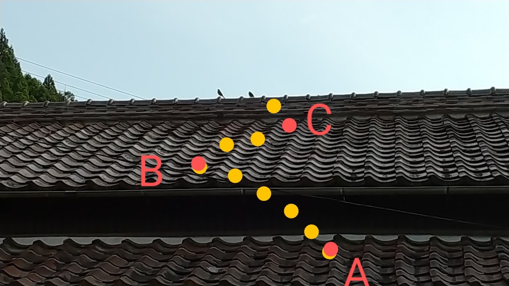 すると ↓ 地上から、 Aの位置(隣のお宅の屋根の上)まで羽ばたけました。やった!