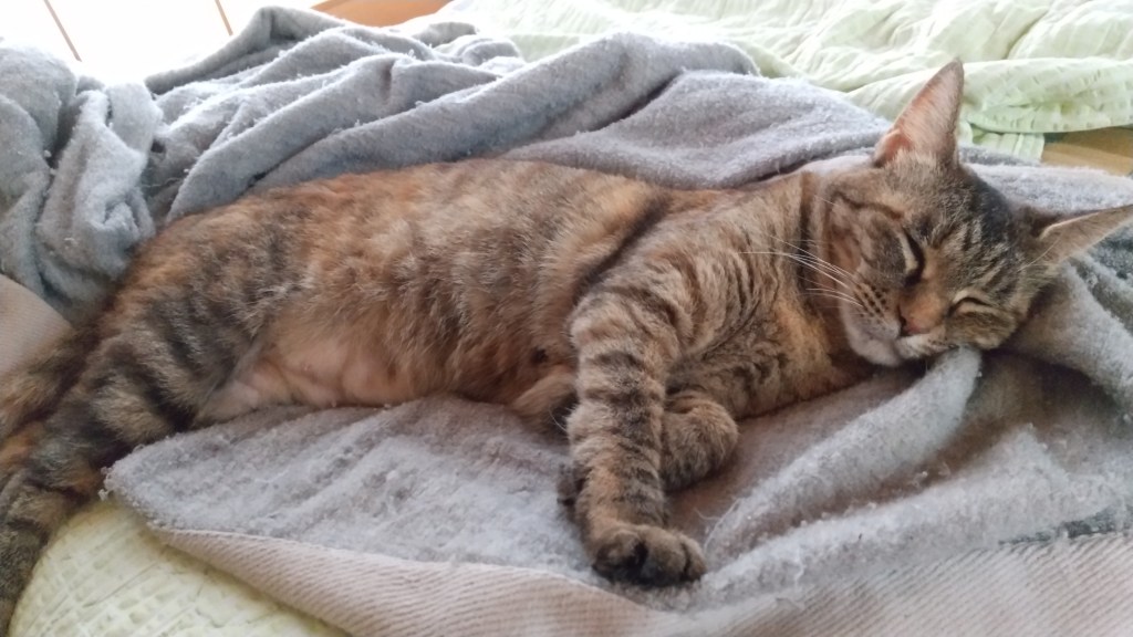 ↑ にゃんこ達の寝てる姿をみてると自然に笑顔になるのですが、ね。猫達には愛嬌のある私です。