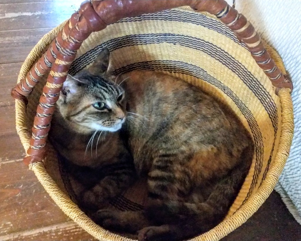 ↑ 涼しくなってきたせいか、スコッチはカゴネコ?になってます。このまま、持ち運びたくなる。