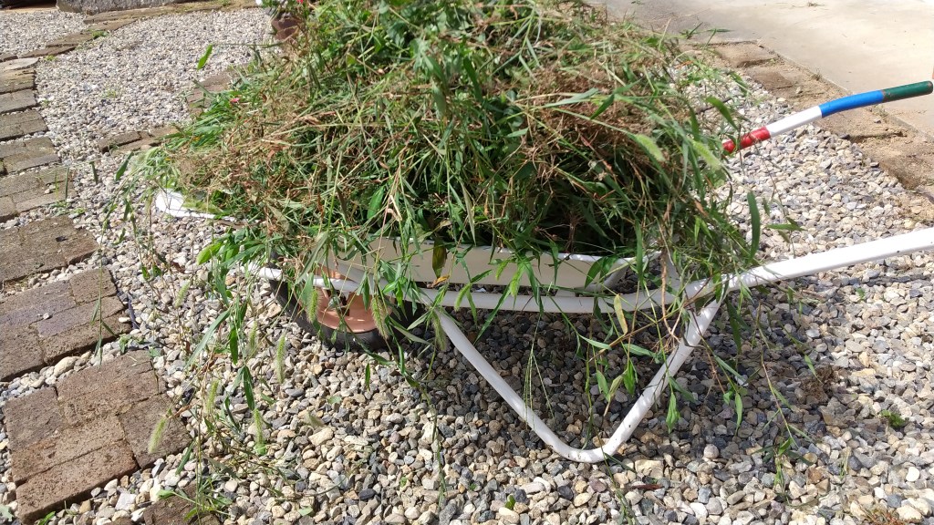 ↑  この1輪車4、5杯分の雑草でした、どんだけ雑草+雑念ためこんでたんだ〜(大汗)
