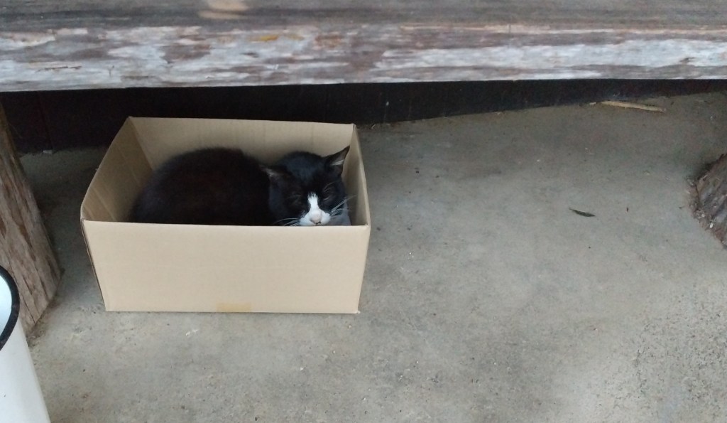 その日はえさをあげてもほとんど食べないで、家裏にフェリックス用に置いてあげた箱の中に入って寝てました。