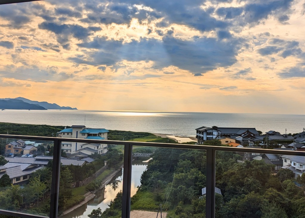 ↑ 夕方、宿から撮影。光が海面に反射して綺麗でした。