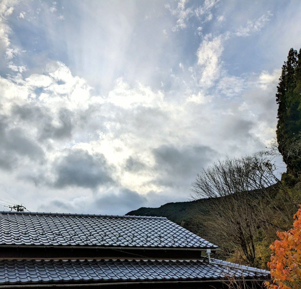 12月12日、夕方近くに帰ってきて空を見上げたら、雲の動きと背景の空になんだかとても心ひかれたので、しばらくただ見入っていました(写真もとりました) ↓